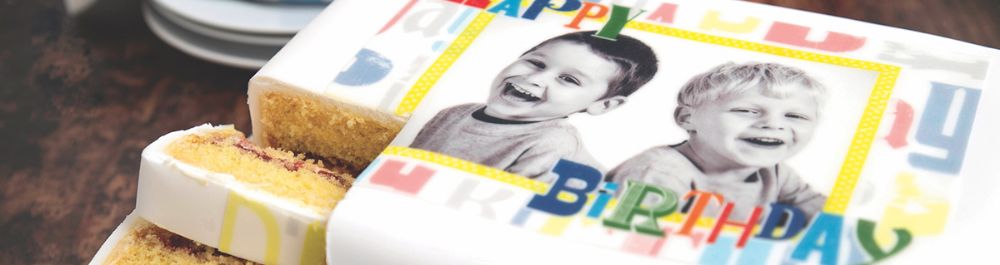 A printed cake topper is an image printed on a sheet of edible paper with edible inks, used to decorate a cake or cupcakes. At Big Day Cakes, we manufacture our own edible inks and print on sugar paper/icing paper. The topper is cut to the required size once it has been printed.
